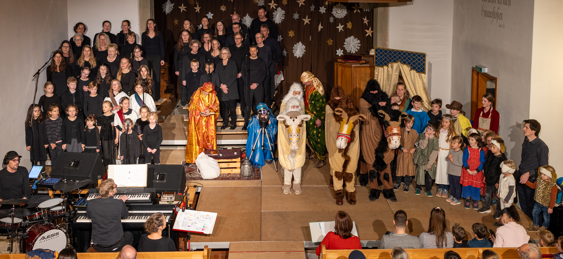 Am 13. und 14. Dez. 2025 führte die Kirchgemeinde das Weihnachtsmusical "Kamel Kemailj" auf. Über 100 Personen waren daran beteiligt, sei es beim Theater, im Chor, in der Band, in der Technik, mit den Kindern oder als Helferinnen und Helfer. Die Kleinsten waren knapp vierjährig, die Ältesten im Pensionsalter – ein richtiges Generationenprojekt! Der Andrang war riesig, die Kirche war zweimal proppenvoll. Alle Beteiligten und alle Zuschauerinnen und Zuschauer waren sehr berührt von diesem Spektakel und erlebten die Weihnachtsgeschichte nochmals ganz neu.