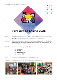 Kirchgemeinde Oberdiessbach Fiire mit de Chliine 2026 Was? Ein Gottesdienst für alle 3- bis 6-jährigen Kinder und ihre Eltern, Grosseltern und Angehörigen. Auch jüngere oder ältere Geschwister sind…