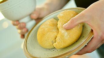 Die Abendmahls-Sets beinhalten Traubensaft, ein Brötchen, eine Liturgie. Ein Set reicht für drei bis vier Personen. Sie müssen nur den Traubensaft in ein Glas umfüllen, das Brot auf einen Teller legen und schon können Sie mitfeiern.