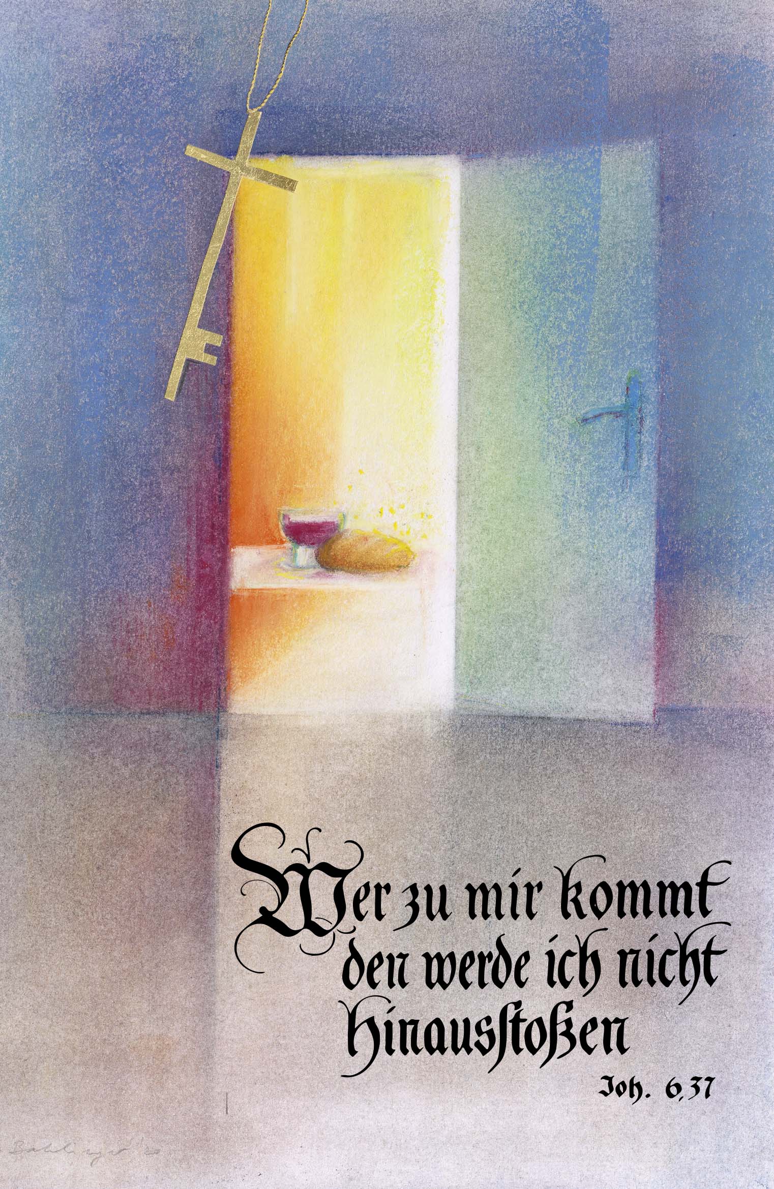 Zur Jahreslosung hat Stefanie Bahlinger ein Bild angefertigt, welches ich mit dem Spruch der Kirche Oberdiessbach ergänzt habe. Hier können Sie das Bild in zwei Varianten herunterladen: